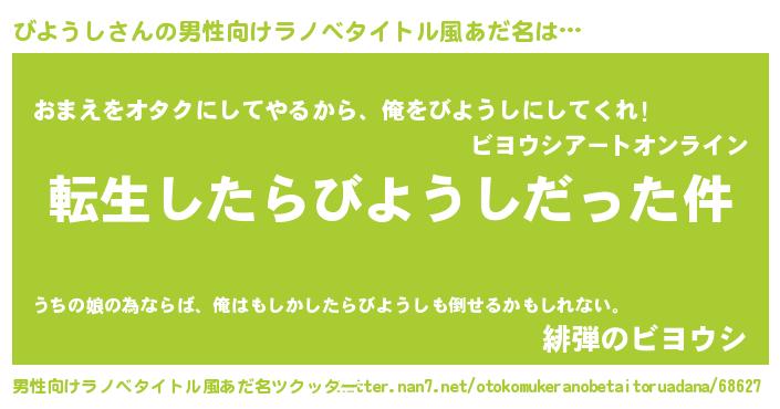 | 女子向けラノベタイトル風あだ名 | 『びようしの玉の輿計画!』 |