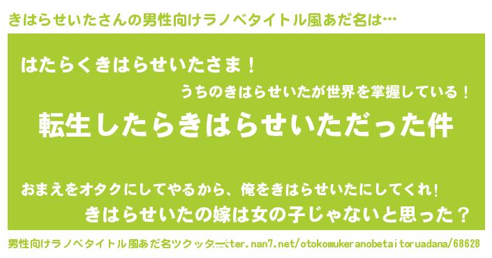 | 胡散臭い通販商品みたいなあだ名 | 『伝統あるサプリメント…その名も「きはらせいた」』 |