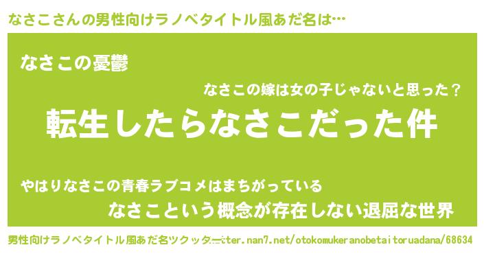 | 胡散臭い通販商品みたいなあだ名 | 『モテモテ間違いなしブレスレット…その名も「なさこ」』 |