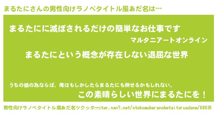| 胡散臭い通販商品みたいなあだ名 | 『来世でも幸せになれる健康食品…その名も「まるたに」』 |