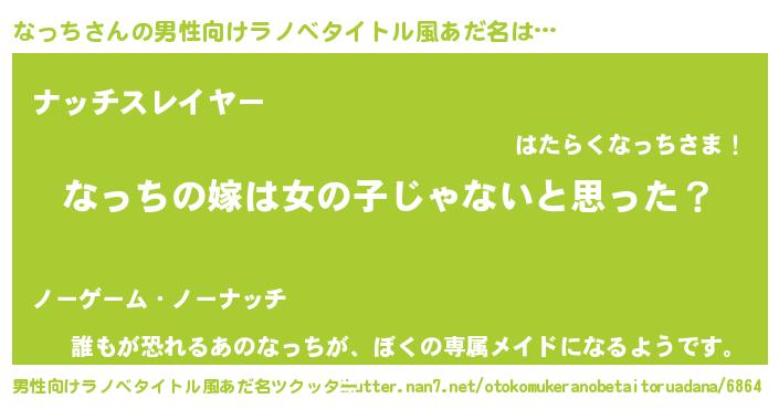 | 女子向けラノベタイトル風あだ名 | 『なっち様がみてる』『なっち恋絵巻』 |