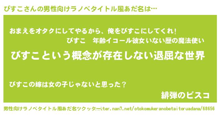 | 胡散臭い通販商品みたいなあだ名 | 『来世でも幸せになれる健康食品…その名も「びすこ」』 |
