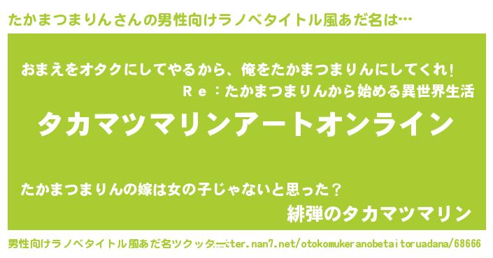 | 胡散臭い通販商品みたいなあだ名 | 『億万長者になれる霊験あらたかなお札…その名も「たかまつまりん」』 |