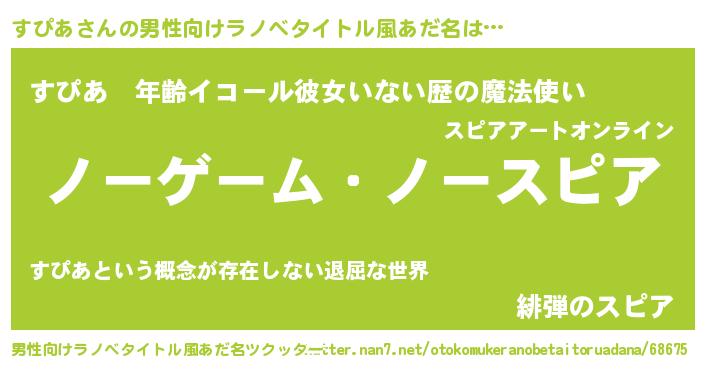 | 女子向けラノベタイトル風あだ名 | 『死神すぴあの再婚』 |