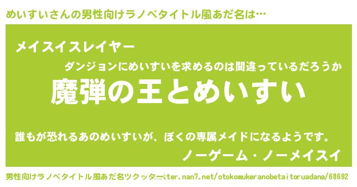 | 意味不明あだ名 | 『住所不定無職めいすい(47歳)』 |