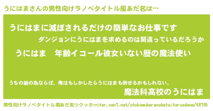 | 意味不明あだ名 | 『ヨモギ科うにはま属』『自称うにはま』 |