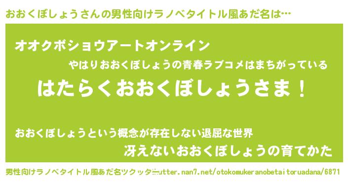 | 胡散臭い通販商品みたいなあだ名 | 『モテモテ間違いなし霊験あらたかなお札…その名も「おおくぼしょう」』 |