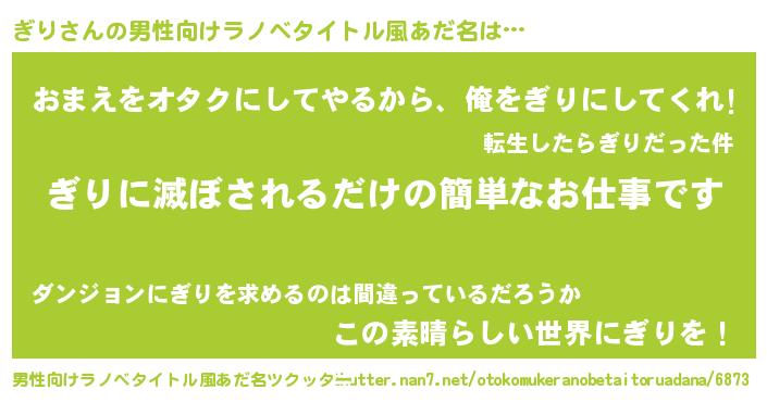 | ヒーロー風カッコイイあだ名 | 『慈愛の使者ぎり』『仮面ギリダー』 |