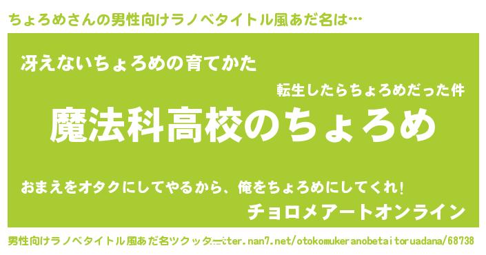 | 意味不明あだ名 | 『自称ちょろめ』『ペロリンちょろめ』 |