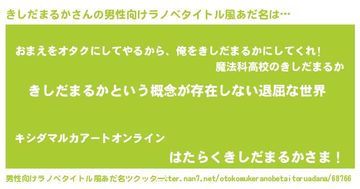 | 胡散臭い通販商品みたいなあだ名 | 『絶対に幸福をもたらす健康食品…その名も「きしだまるか」』 |