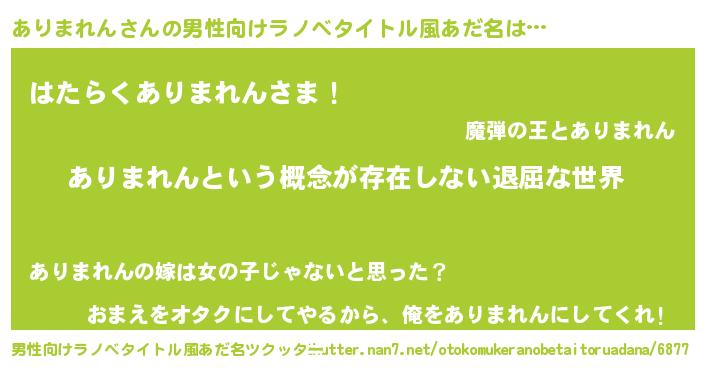 | 胡散臭い通販商品みたいなあだ名 | 『絶対に幸福をもたらす水素水…その名も「ありまれん」』 |