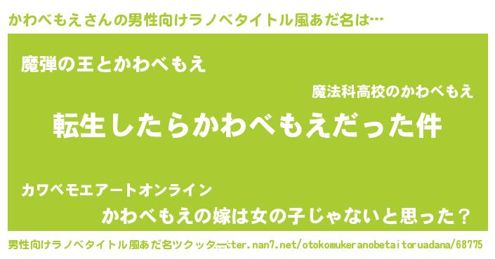 | 女子向けラノベタイトル風あだ名 | 『かわべもえの玉の輿計画!』 |
