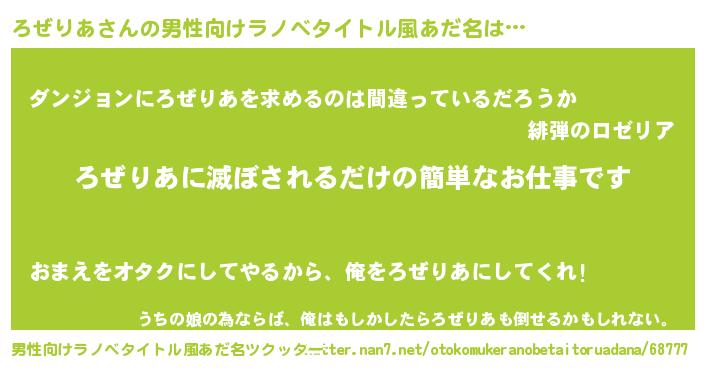 | 女子向けラノベタイトル風あだ名 | 『横柄ろぜりあと宰相陛下』 |