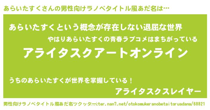 | 胡散臭い通販商品みたいなあだ名 | 『モテモテ間違いなしブレスレット…その名も「あらいたすく」』 |