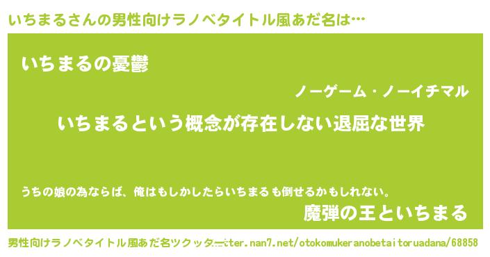 いちまるさんの男性向けラノベタイトル風あだ名をツクッター!