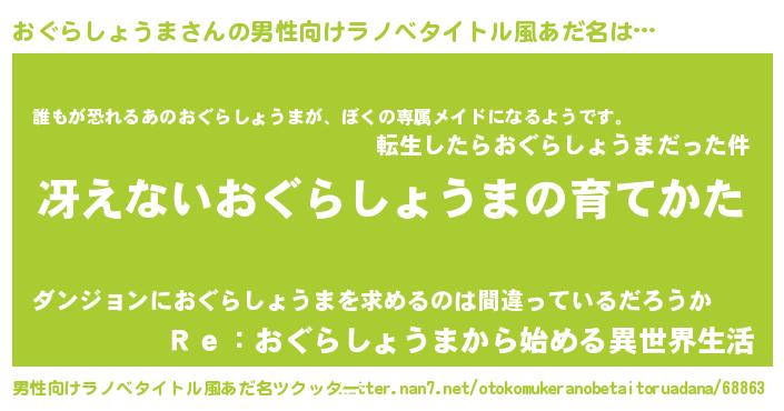 | 胡散臭い通販商品みたいなあだ名 | 『来世でも幸せになれる健康食品…その名も「おぐらしょうま」』 |