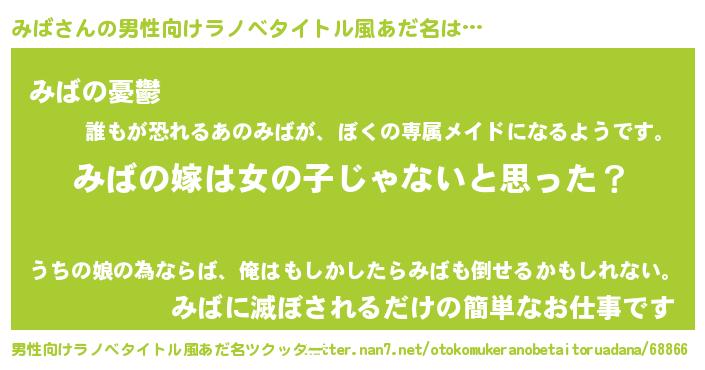 | 女子向けラノベタイトル風あだ名 | 『みばの卵を拾いまして』『みばの婚約者』 |