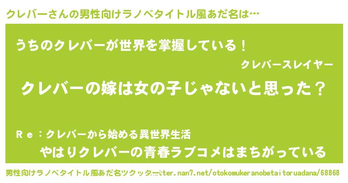| 女子向けラノベタイトル風あだ名 | 『クレバー様がみてる』 |