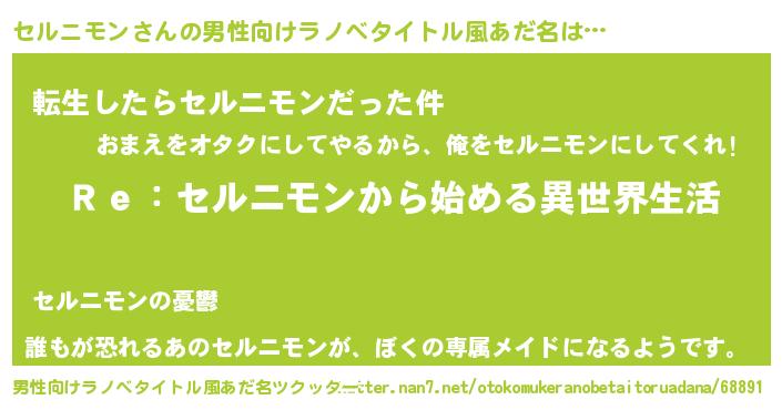 | 女子向けラノベタイトル風あだ名 | 『闇のセルニモン』 |