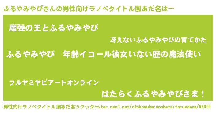 | 胡散臭い通販商品みたいなあだ名 | 『あなたにだけ特別に提供する世界で10本だけ現存している希少なブランデー…その名も「ふるやみやび」』 |