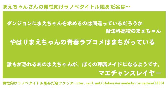 | 女子向けラノベタイトル風あだ名 | 『まえちゃんの雑貨屋さん』 |