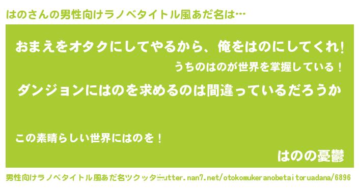 | 女子向けラノベタイトル風あだ名 | 『はのの卵を拾いまして』『はの恋絵巻』 |