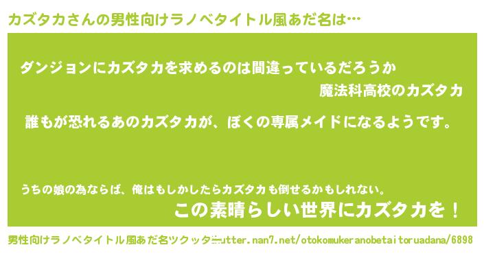 | 女子向けラノベタイトル風あだ名 | 『カズタカの契約王妃』 |