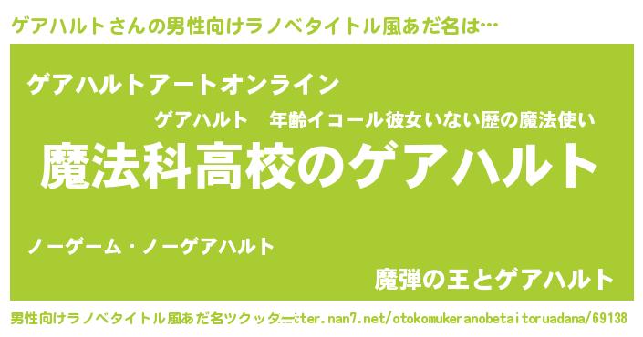 | 女子向けラノベタイトル風あだ名 | 『ゲアハルトなんてお断りですっ。』 |