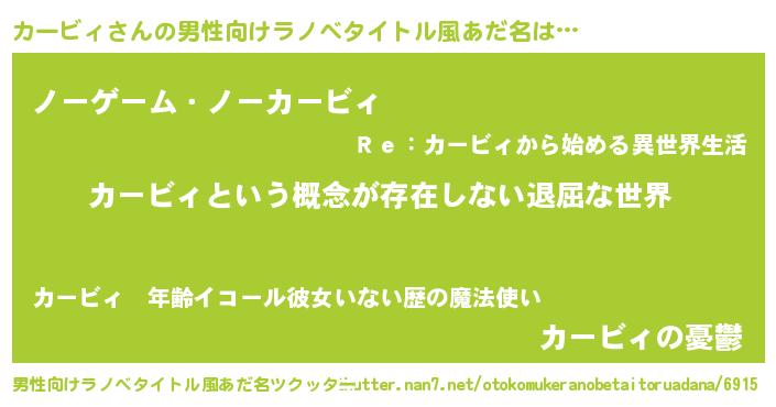 | 女子向けラノベタイトル風あだ名 | 『異世界で失敗しない100のカービィ』 |
