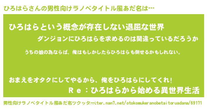 | 胡散臭い通販商品みたいなあだ名 | 『運命の人と巡り会える高級そうな皿…その名も「ひろはら」』 |