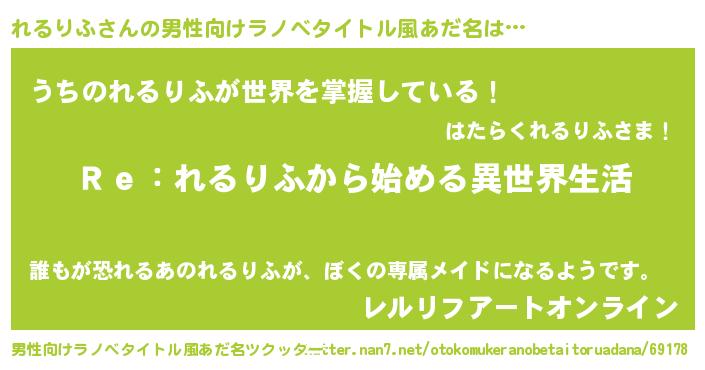 | 女子向けラノベタイトル風あだ名 | 『れるりふストレイドッグス』 |