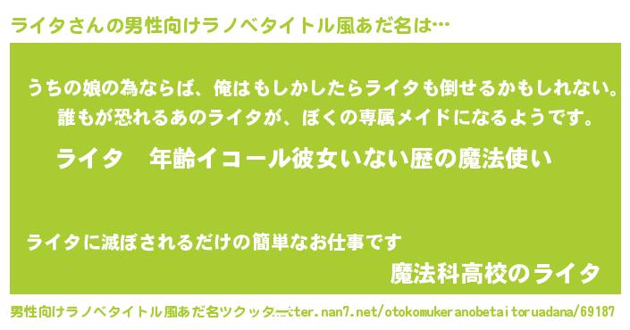 | 胡散臭い通販商品みたいなあだ名 | 『運命の人と巡り会える高級そうな壺…その名も「ライタ」』 |