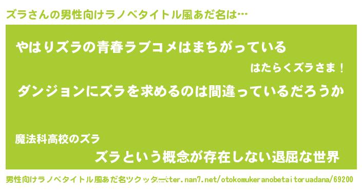 ズラさんの男性向けラノベタイトル風あだ名をツクッター!