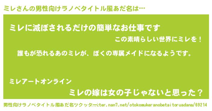 | ヒーロー風カッコイイあだ名 | 『ネオミレ』『天弓騎士ミレ』 |