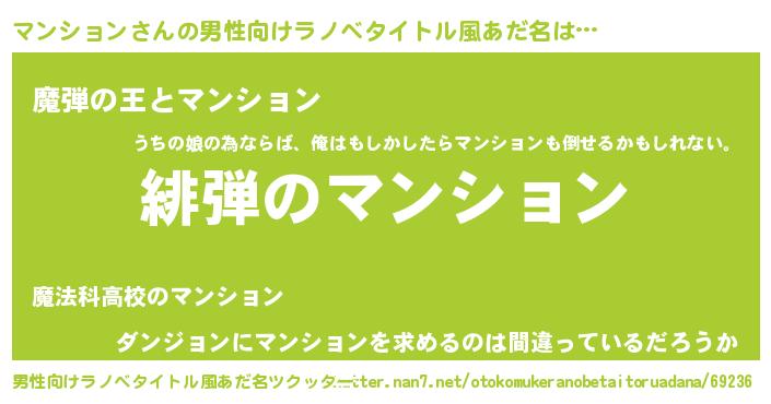 | 意味不明あだ名 | 『住所不定無職マンション(71歳)』 |