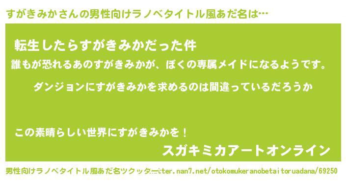 | 女子向けラノベタイトル風あだ名 | 『すがきみかは平凡を望む』 |