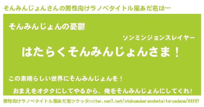 | ヘコむあだ名 | 『そんふぇ~』『そんみんじょん(笑)』 |