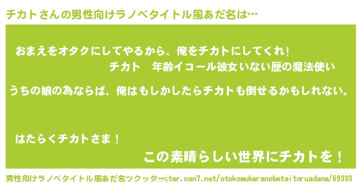 | 胡散臭い通販商品みたいなあだ名 | 『運命の人と巡り会える高級そうな皿…その名も「チカト」』 |