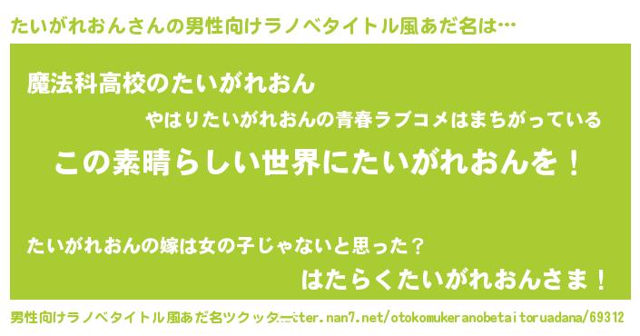 | 意味不明あだ名 | 『住所不定無職たいがれおん(59歳)』 |
