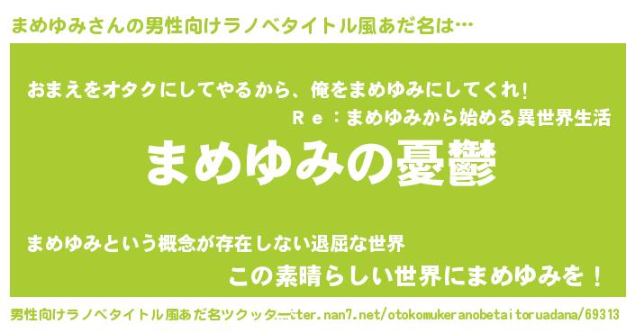 | 意味不明あだ名 | 『ペロリンまめゆみ』『自称まめゆみ』 |