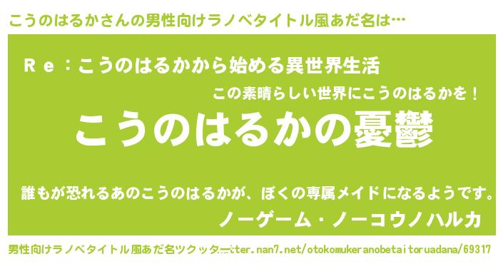 | 肩書あだ名 | 『こうのはるか社長』『こうのはるか閣下』 |