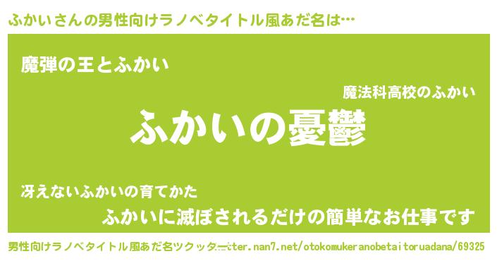 | 女子向けラノベタイトル風あだ名 | 『(仮)ふかいのやんごとなき事情』 |