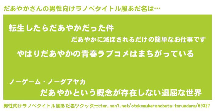 | 女子向けラノベタイトル風あだ名 | 『だあやか伯爵の花嫁』 |