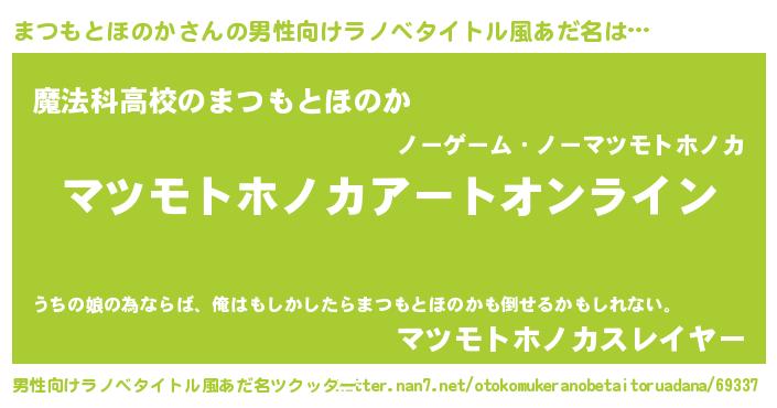 | 女子向けラノベタイトル風あだ名 | 『誰かこのまつもとほのかを説明してください! ~契約から始まるウェディング~』 |