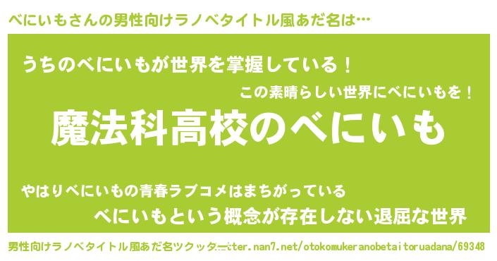 | 女子向けラノベタイトル風あだ名 | 『べにいもアンティーク』 |