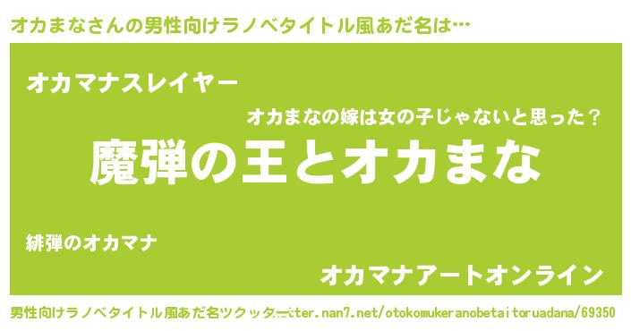 | 女子向けラノベタイトル風あだ名 | 『オカまなが死なない童話 林檎のオカまなの診療簿』 |