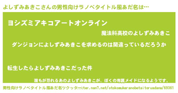 | 女子向けラノベタイトル風あだ名 | 『よしずみあきこは平凡を望む』 |
