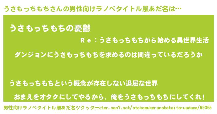 | 女子向けラノベタイトル風あだ名 | 『うさもっちもちの卵を拾いまして』 |