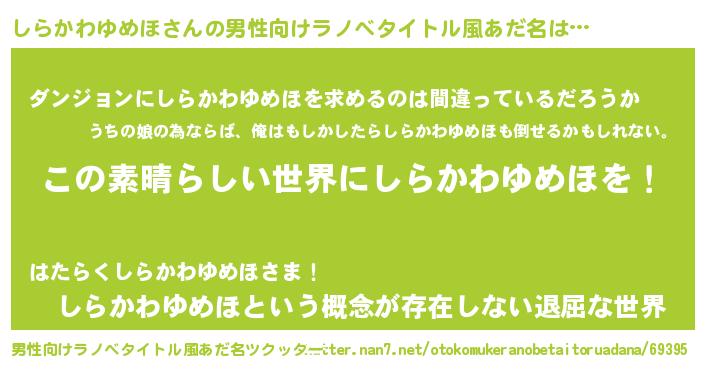 | 胡散臭い通販商品みたいなあだ名 | 『あなたにだけ特別に提供する世界で10本だけ現存している希少なブランデー…その名も「しらかわゆめほ」』 |