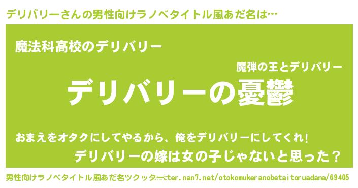 | 女子向けラノベタイトル風あだ名 | 『(仮)デリバリーのやんごとなき事情』 |
